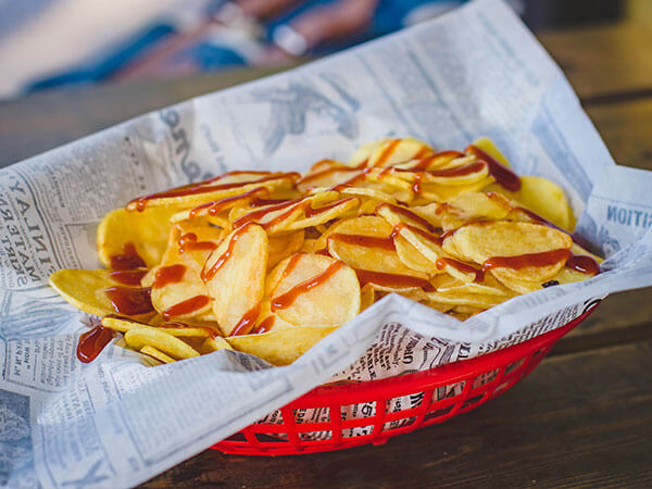 Deep fried, seasoned potato chips